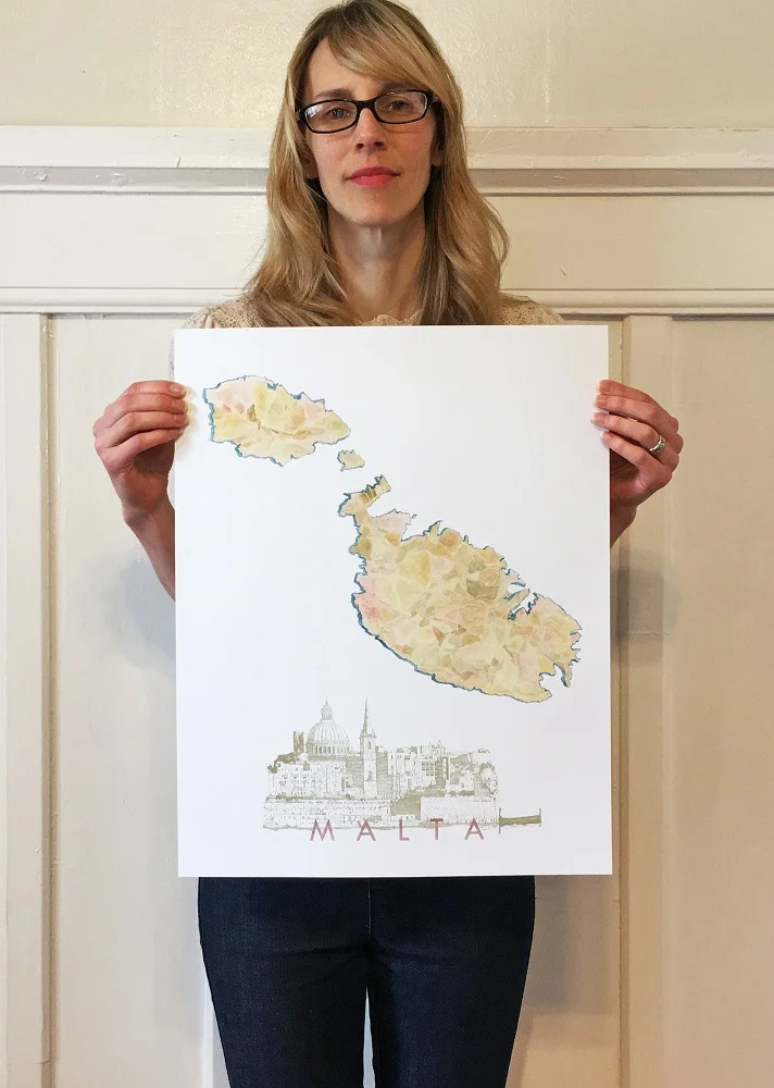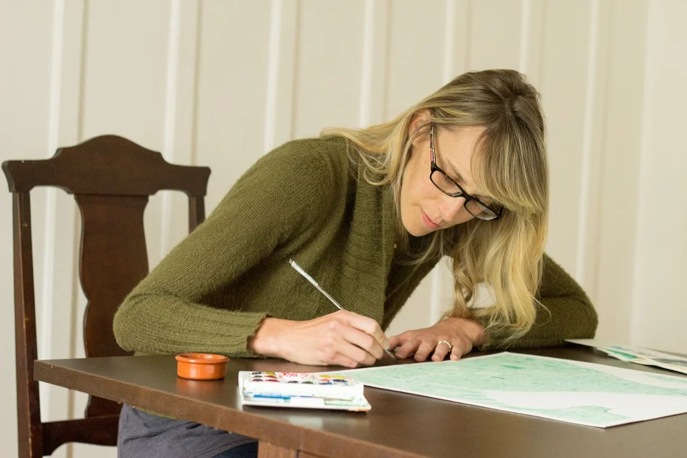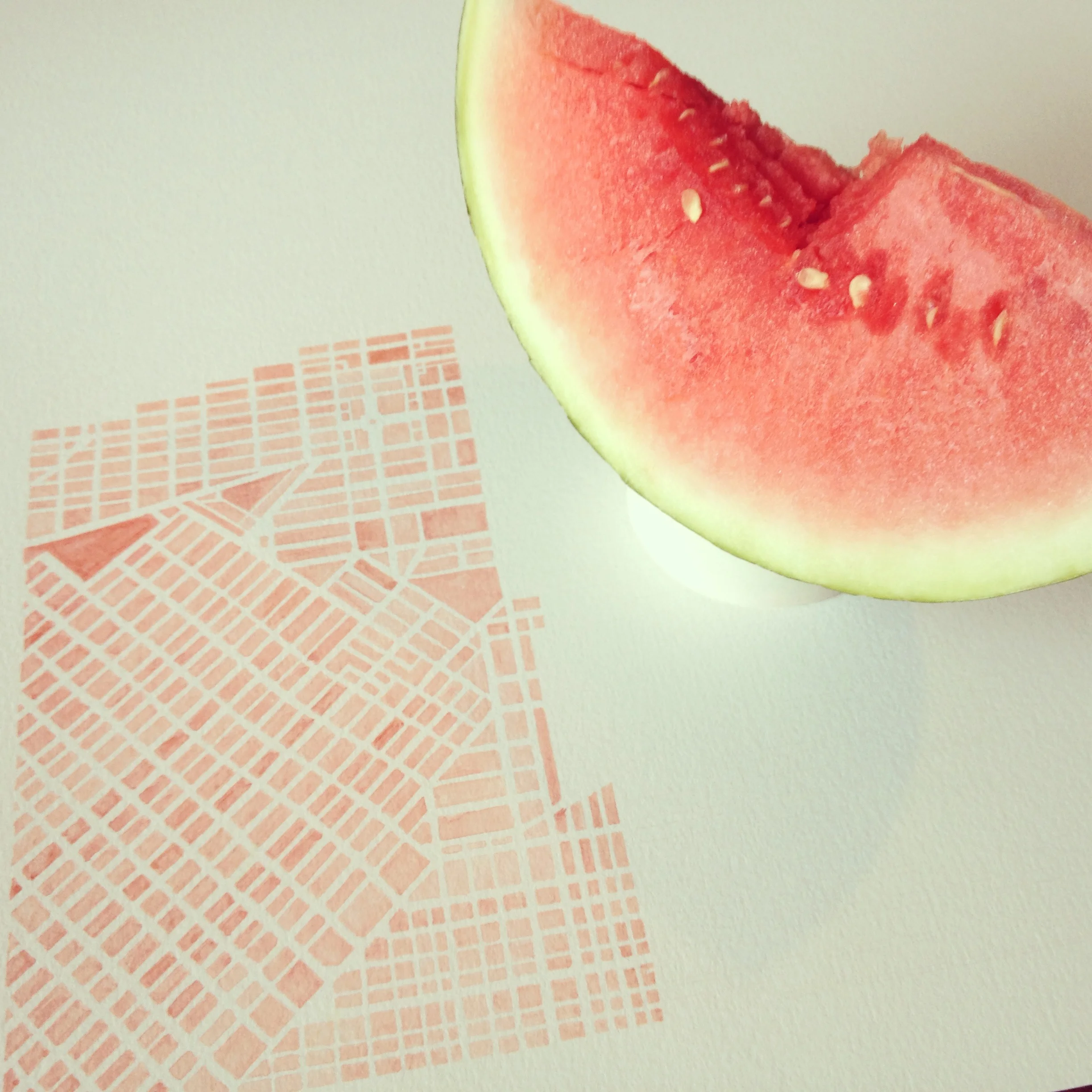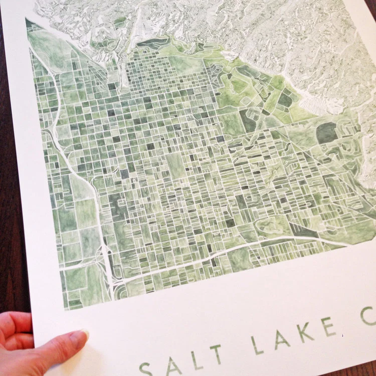 I'm really happy about now, but I definitely feel excited about the future. I want to continue making more city map-drawings...so many great cities to explore with my pen and paint, as well as the beautiful Mormon temples, all drawn by commission. I have no shortage of subjects! I designed a fabric line produced this year by Moda and would love to do a line inspired by watercolor maps and landscape patterns. I think my maps would look neat on tote bags, so perhaps an expanded offering there. Up next, though, I'd really like to partner with a frame crafter so I can offer the option of a clean, minimal well-made frame to buyers of my prints and original pieces.